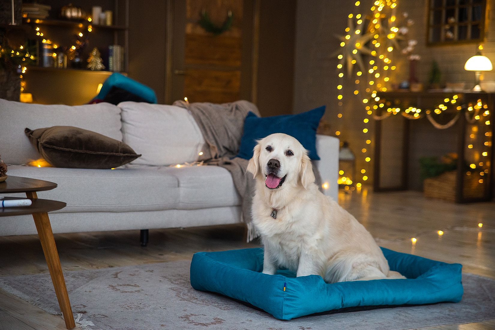 Лежаки виготовлені з високоякісного зносостійкого матеріалу- иеблевого велюру щільністю 230 г/м, який не вицвітає, має зносотійкість 30 000 циклов по Мартиндейлу. Однією з переваг є те, що лежаки ллегко та без усиль можна відчистити від шерсті - достатнью просто зібрати шерсть вологою долонею або щіткою!