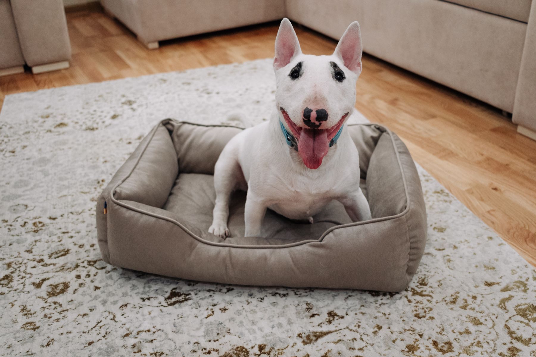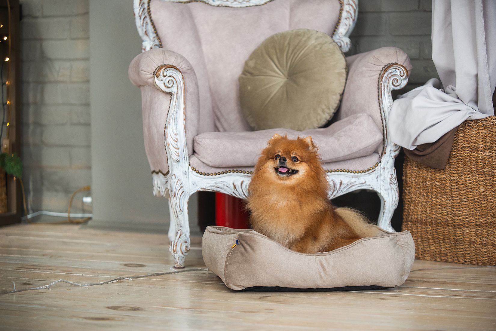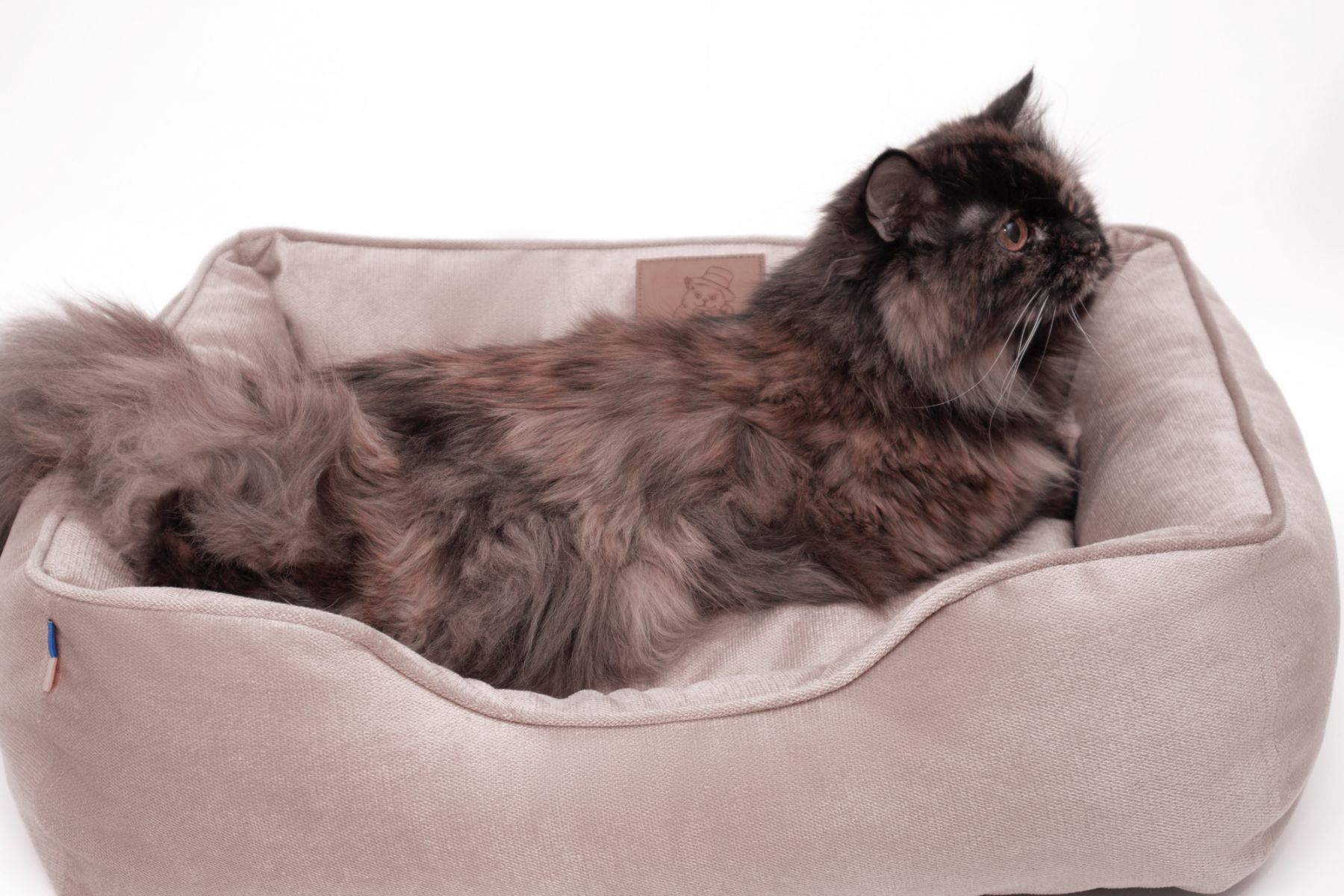 Лежаки виготовлені з високоякісного зносостійкого матеріалу- иеблевого велюру щільністю 230 г/м, який не вицвітає, має зносотійкість 30 000 циклов по Мартиндейлу. Однією з переваг є те, що лежаки ллегко та без усиль можна відчистити від шерсті - достатнью просто зібрати шерсть вологою долонею або щіткою!