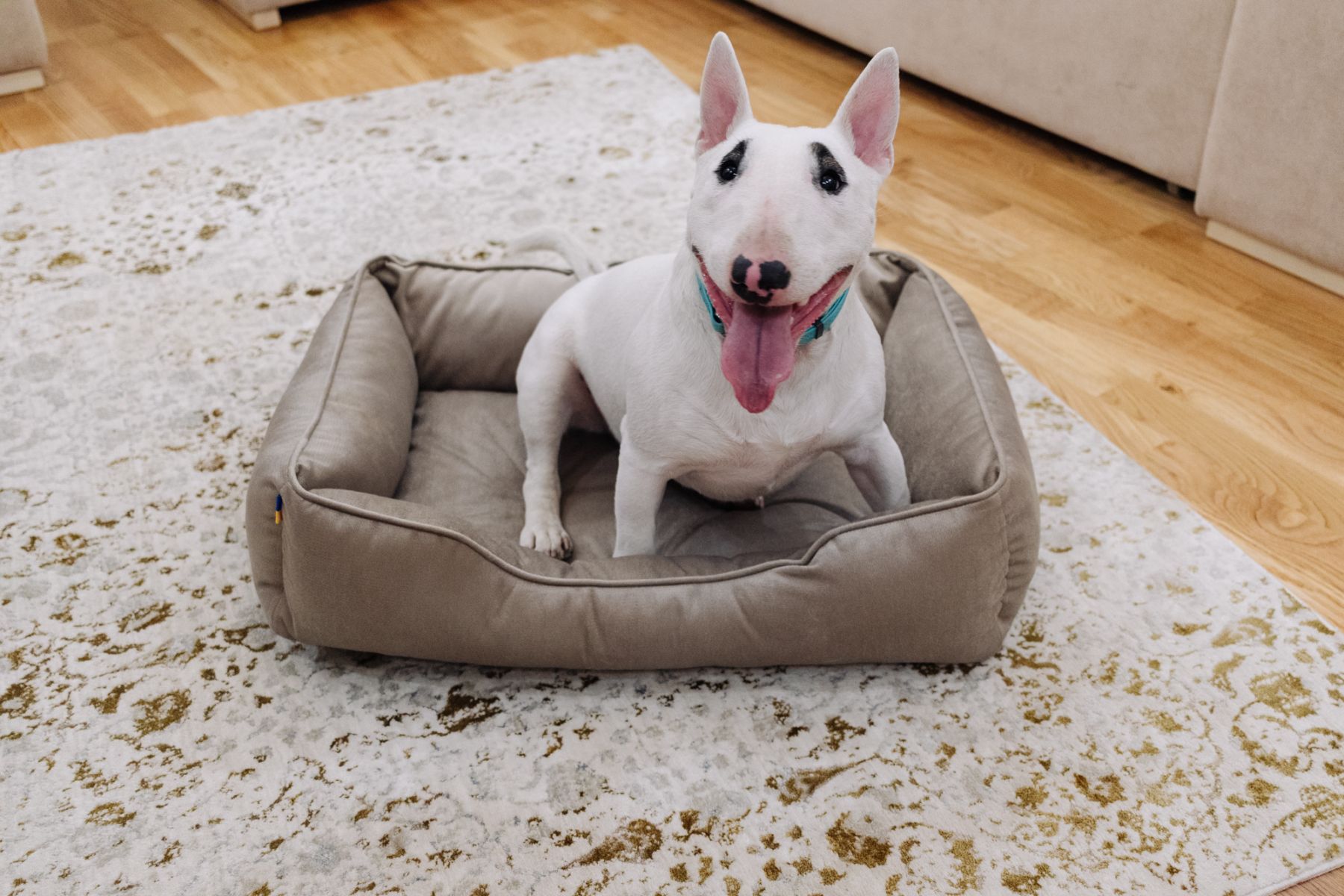 Наповнювач - синтепух. Форма лежака, м'які бортики, тактильно приємна тканина створюють затишок для відчуття безпеки у вашого улюбленця.